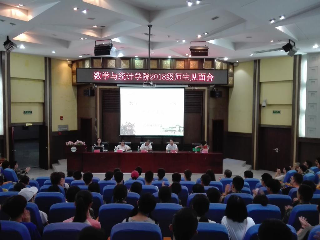 (數(shù)學(xué)與統(tǒng)計學(xué)院 通訊員 張億瑞 陸文科)9月9日晚6點(diǎn)半,數(shù)統(tǒng)學(xué)院在行政樓一樓報告廳舉行2018級師生見面會。院黨委書記劉浩、院長王成勇、副院長丁凌、院長助理張旻嵩,全體中層干部、全體輔導(dǎo)員、全體新生班主任和2018級新生參加會議。黨委副書記姚威主持會議。