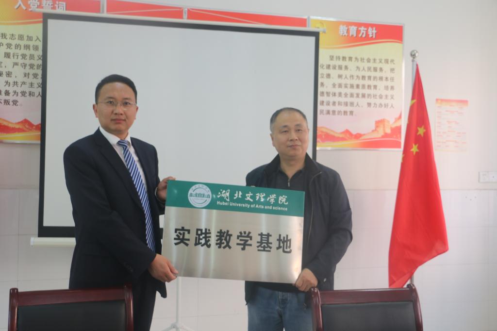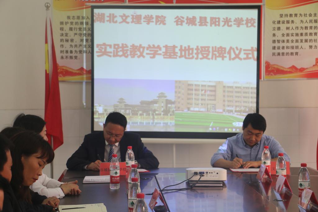 王成勇代表學(xué)院與谷城陽光學(xué)校簽訂實(shí)踐教學(xué)基地協(xié)議;劉浩代表學(xué)院向谷城陽光學(xué)校實(shí)踐教學(xué)基地授牌。