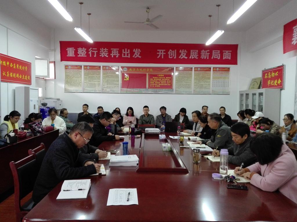 (數(shù)學與統(tǒng)計學院 通訊員 耿付荃)2019年10月17日下午,數(shù)學與統(tǒng)計學院在學院會議室組織“不忘初心、牢記使命”優(yōu)秀共產(chǎn)黨員先進事跡學習會。會議由學院黨委書記劉浩主持。