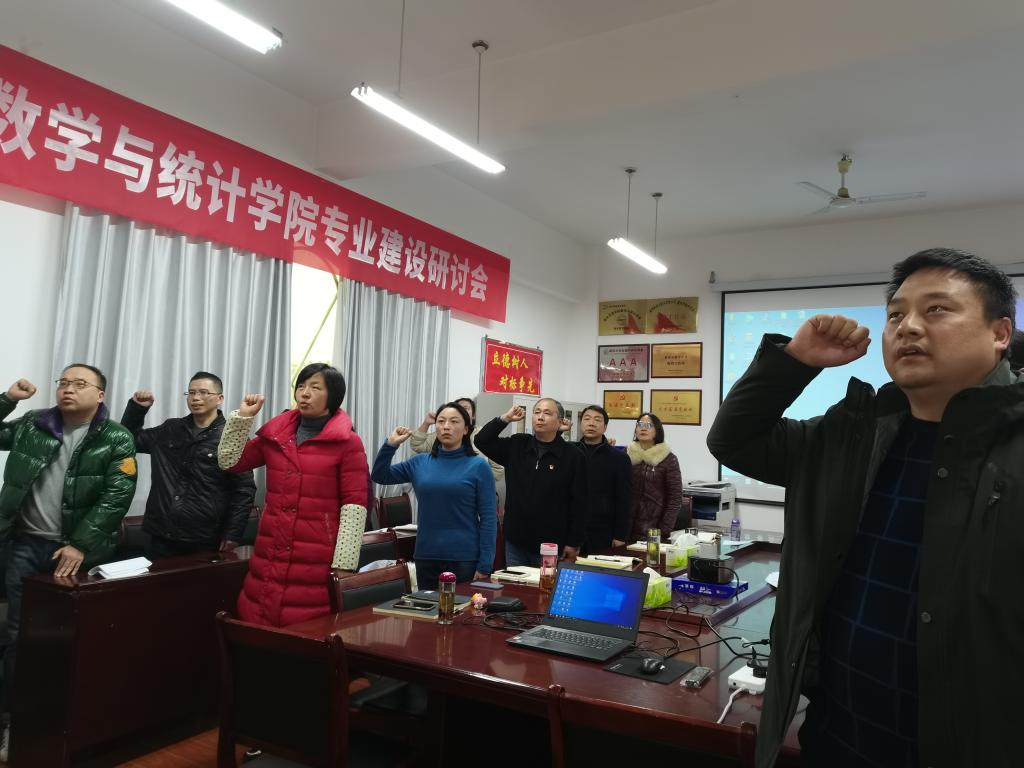 主題黨日按照“回顧初心、黨性教育、民主議事、實(shí)踐鍛煉”四個(gè)板塊要求進(jìn)行,全體黨員首先在學(xué)院會(huì)議室集中進(jìn)行奏唱國(guó)歌、重溫入黨誓詞兩項(xiàng)議程。主題黨日由數(shù)學(xué)與應(yīng)用數(shù)學(xué)系教師黨支部書(shū)記楊艷主持、信息與計(jì)算科學(xué)系教師黨支部書(shū)記陶茂虎領(lǐng)誓。