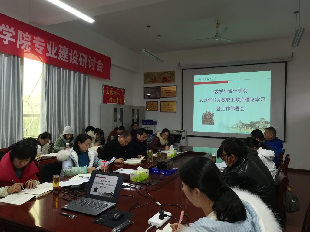(數(shù)學(xué)與統(tǒng)計(jì)學(xué)院 通訊員 耿付荃)2021年12月16日下午,數(shù)學(xué)與統(tǒng)計(jì)學(xué)院全體教職工在學(xué)院會(huì)議室召開(kāi)12月份教職工政治理論學(xué)習(xí)暨工作部署會(huì)。會(huì)議由黨委書記劉浩主持。