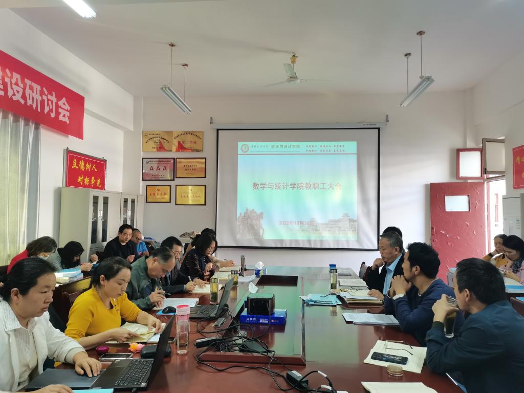 (數(shù)學與統(tǒng)計學院 通訊員 耿付荃)10月20日下午,數(shù)學與統(tǒng)計學院組織全體教職工在學院會議室召開2022年10月份教職工大會,宣講黨的二十大精神。會議由學院黨委書記劉浩主持。