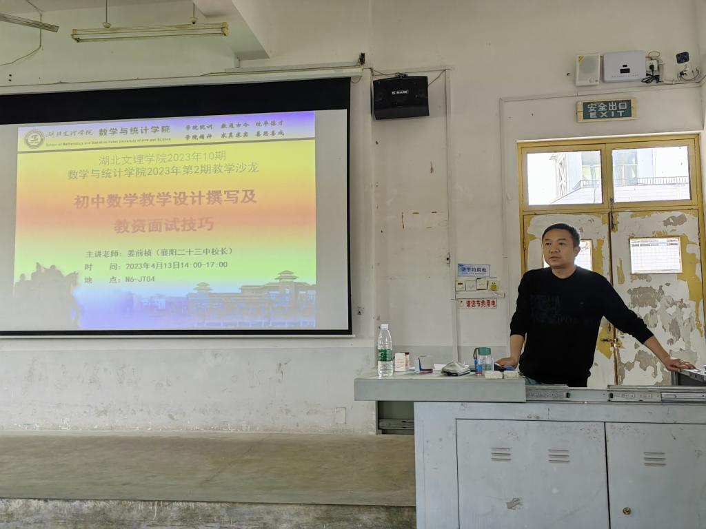 (數(shù)學(xué)與統(tǒng)計(jì)學(xué)院 通訊員 趙秀菊)4月13日下午,襄陽(yáng)市二十三中校長(zhǎng)姜前楨應(yīng)學(xué)院邀請(qǐng),為數(shù)學(xué)與應(yīng)用數(shù)學(xué)(師范)專業(yè)2019級(jí)、2020級(jí)學(xué)生作了一場(chǎng)題為《初中數(shù)學(xué)教學(xué)設(shè)計(jì)撰寫(xiě)及教資面試技巧》的報(bào)告。