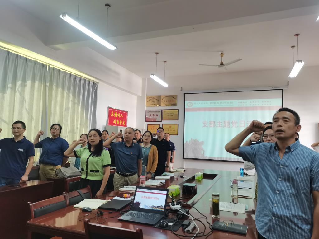 主題黨日按照“回顧初心、黨性教育、民主議事、實踐鍛煉”四個板塊要求進(jìn)行,全體黨員首先在學(xué)院會議室集中進(jìn)行奏唱國歌、重溫入黨誓詞兩項議程,由信息與計算科學(xué)系教師黨支部書記陶茂虎主持、數(shù)學(xué)與應(yīng)用數(shù)學(xué)系教師黨支部書記張敏捷領(lǐng)誓。
