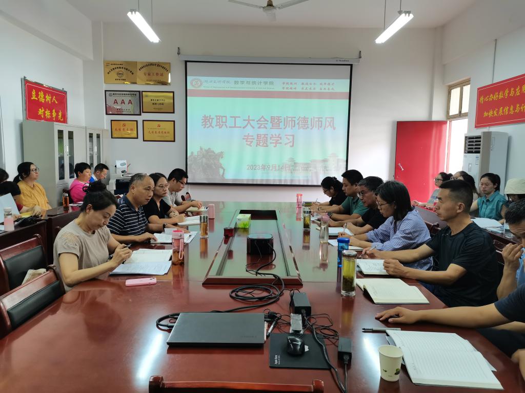 (數(shù)學(xué)與統(tǒng)計(jì)學(xué)院 通訊員 耿付荃) 9月14日,數(shù)學(xué)與統(tǒng)計(jì)學(xué)院召開教職工大會(huì),組織學(xué)習(xí)習(xí)近平總書記關(guān)于弘揚(yáng)教育家精神的重要指示。會(huì)議由學(xué)院黨委書記劉浩主持。