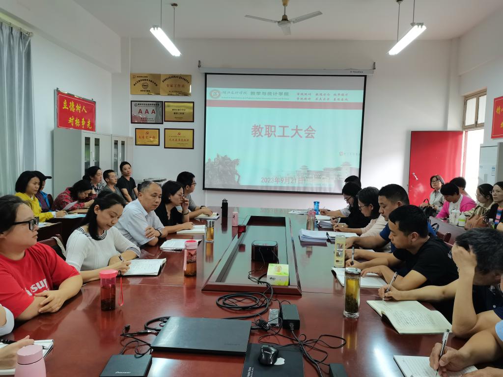(數(shù)學(xué)與統(tǒng)計學(xué)院 通訊員 耿付荃) 9月21日,數(shù)學(xué)與統(tǒng)計學(xué)院召開教職工大會暨師德師風(fēng)建設(shè)月、黨風(fēng)廉政宣教月學(xué)習(xí)會。學(xué)院全體教職工參加,會議由學(xué)院黨委書記劉浩主持。