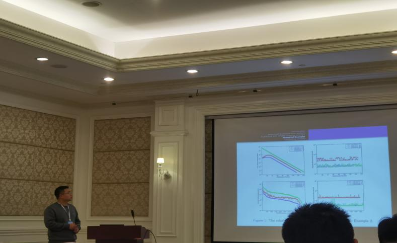 上海交通大學周棟焯教授、武漢大學繆爽教授、中山大學路遙教授作了精彩的學術報告。來自湖北省各高校的教師代表交流了工業(yè)與應用數學各研究方向的最新學術進展及其在產業(yè)界的應用成果,并結合工業(yè)中急需解決的關鍵問題和難點問題展開了討論。分組報告環(huán)節(jié),數學與統(tǒng)計學院青年博士呂鵬作了題為“Structured backward error analysis for a class of block three-by-three saddle point problems”的學術報告。