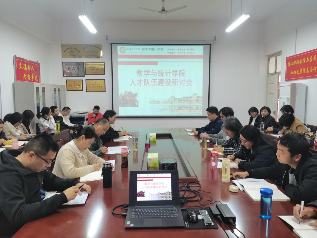 (數學與統計學院 通訊員 耿付荃)根據學校《內涵發(fā)展 質量提升—促進綜合性大學創(chuàng)建思想大討論實施方案》和人才隊伍建設專題研討工作部署,數學與統計學院11月9日召開人才隊伍建設專題研討會。會議由學院黨委書記劉浩主持,全體教職工參加。