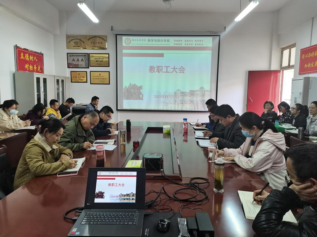 (數(shù)學(xué)與統(tǒng)計(jì)學(xué)院 通訊員 耿付荃)11月23日,數(shù)學(xué)與統(tǒng)計(jì)學(xué)院召開教職工大會,開展政治理論學(xué)習(xí),安排近期工作。會議由學(xué)院黨委書記劉浩主持。