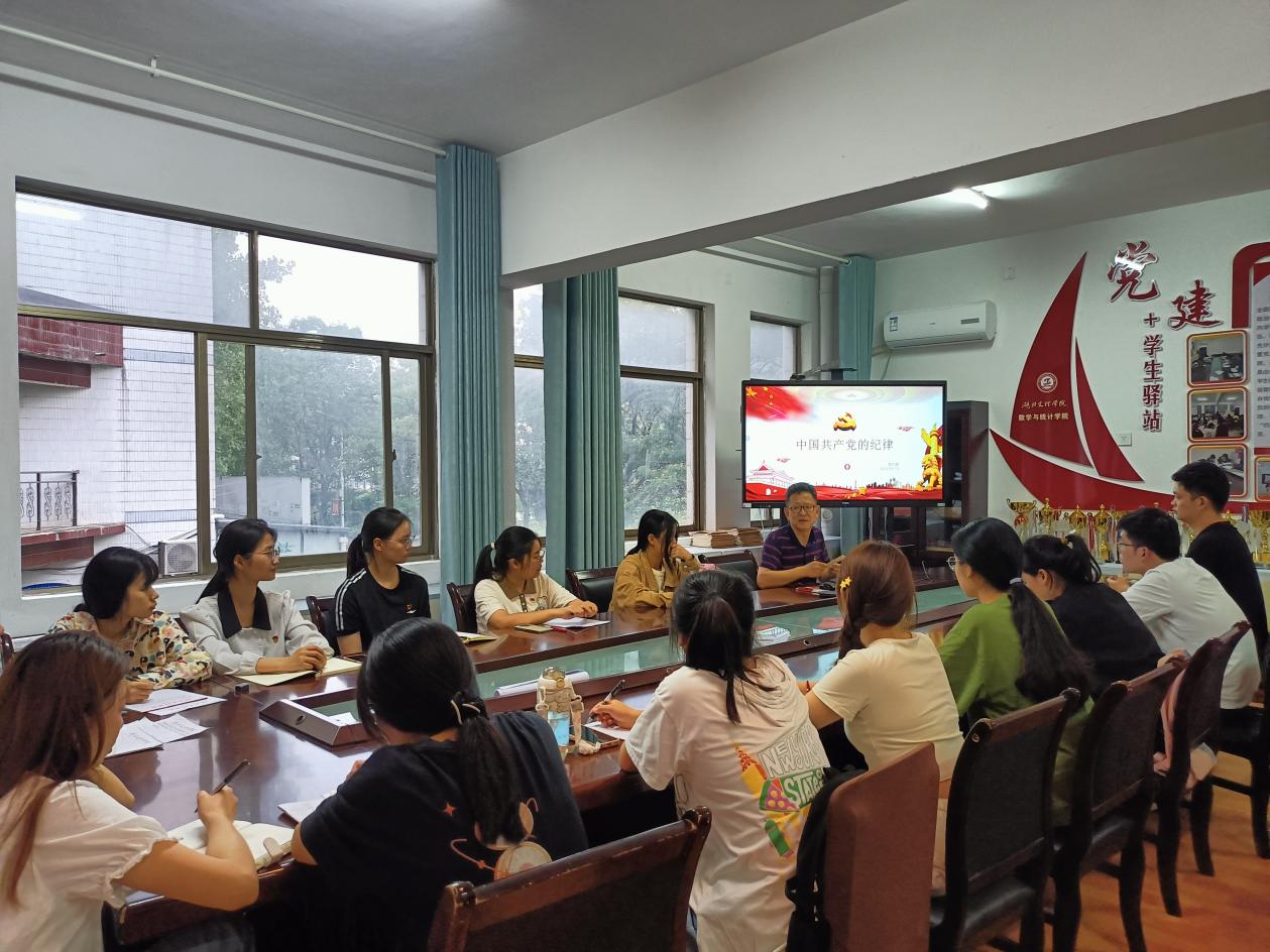 (數(shù)學(xué)與統(tǒng)計(jì)學(xué)院 通訊員 徐佳)6月4日下午,數(shù)學(xué)與統(tǒng)計(jì)學(xué)院黨委書(shū)記袁紅星在學(xué)院“黨建+”學(xué)生驛站,為學(xué)生黨員講授黨紀(jì)學(xué)習(xí)教育專(zhuān)題黨課。