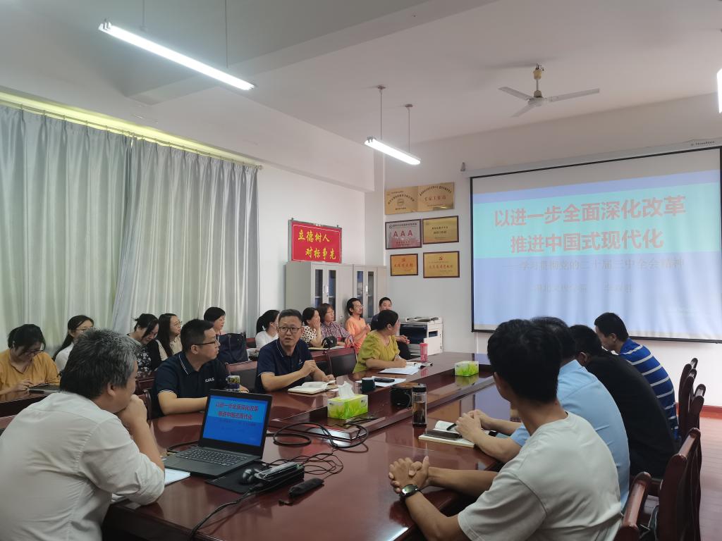 袁紅星在總結(jié)講話時(shí)表示,李雙勝教授的報(bào)告架構(gòu)嚴(yán)謹(jǐn)、深入透徹、內(nèi)容豐富,為全院教職工深入學(xué)習(xí)貫徹黨的二十屆三中全會(huì)精神提供了理論指導(dǎo)。袁紅星強(qiáng)調(diào),要把學(xué)習(xí)宣傳貫徹黨的二十屆三中全會(huì)精神作為當(dāng)前和今后一個(gè)時(shí)期學(xué)院的首要政治任務(wù),深入推動(dòng)黨的二十屆三中全會(huì)精神入腦入心,切實(shí)把思想和行動(dòng)統(tǒng)一到黨中央決策部署上來(lái)。要結(jié)合市委“一樞紐四基地”目標(biāo)定位、學(xué)校“兩階段、第一階段三步走”發(fā)展目標(biāo)和學(xué)院發(fā)展實(shí)際,把學(xué)習(xí)成果轉(zhuǎn)化為突破發(fā)展瓶頸,破解發(fā)展難題,推動(dòng)學(xué)院高質(zhì)量發(fā)展的實(shí)際成效和強(qiáng)大動(dòng)力。
