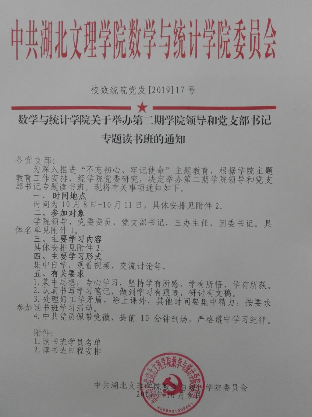 數(shù)學(xué)與統(tǒng)計(jì)學(xué)院關(guān)于舉辦第二期學(xué)院領(lǐng)導(dǎo)和黨支部書記專題讀書班的通知