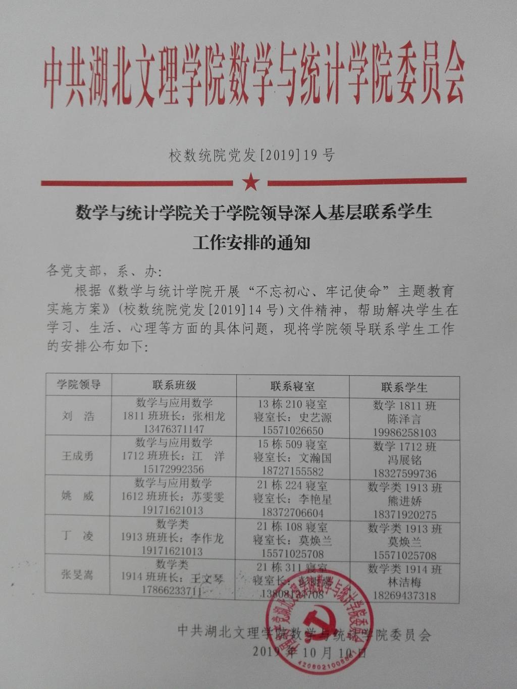 數(shù)學與統(tǒng)計學院關于學院領導深入基層聯(lián)系學生工作安排的通知