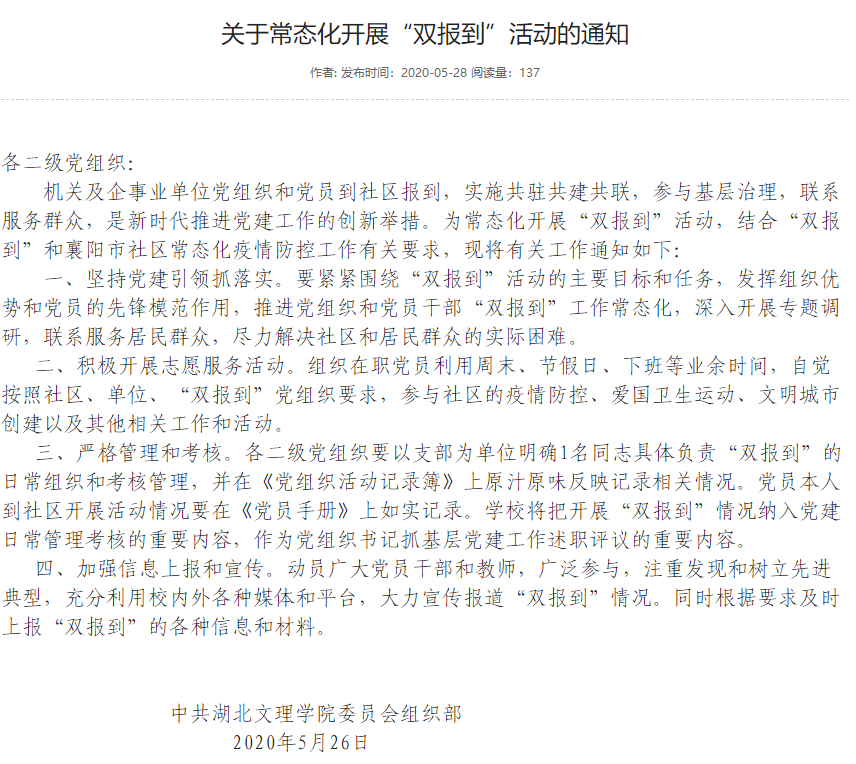 關(guān)于常態(tài)化開展“雙報到”活動的通知