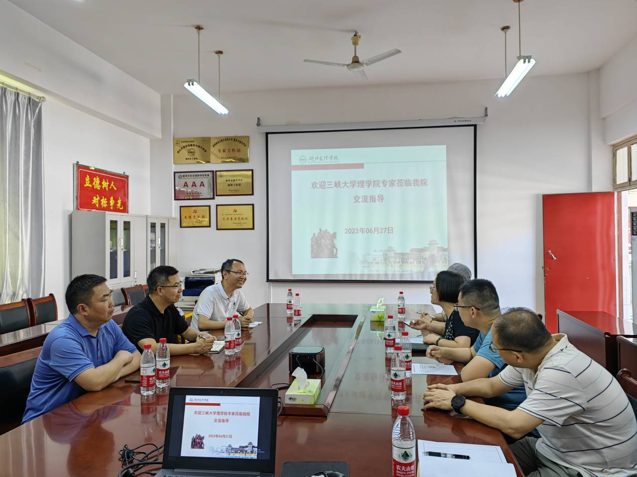 (數(shù)學(xué)與統(tǒng)計學(xué)院通訊員 趙秀菊)2023年6月27日下午,三峽大學(xué)理學(xué)院楊雄波、趙守江、曹志杰一行來我院開展研究生招生宣講及經(jīng)驗交流。學(xué)院副院長丁凌熱情接待了楊雄波一行。