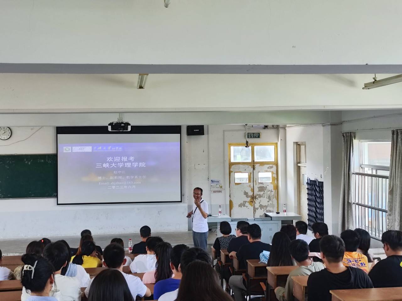 下午2點至3點半在N6-JT04教室由三峽大學(xué)數(shù)學(xué)系趙守江主任針對我院2020級學(xué)生進(jìn)行集中宣講。趙主任分別從宜昌的地理位置和旅游特色、學(xué)校學(xué)院的歷史發(fā)展、辦學(xué)優(yōu)勢、招生情況、學(xué)生就業(yè)、研究生待遇等幾個方面進(jìn)行了詳細(xì)的介紹,并和與會師生進(jìn)行了互動和交流,最后還就2023年夏令營活動發(fā)出邀請。此次宣講使我院2024屆畢業(yè)生對三峽大學(xué)的研究生招生相關(guān)信息有了詳細(xì)地了解。