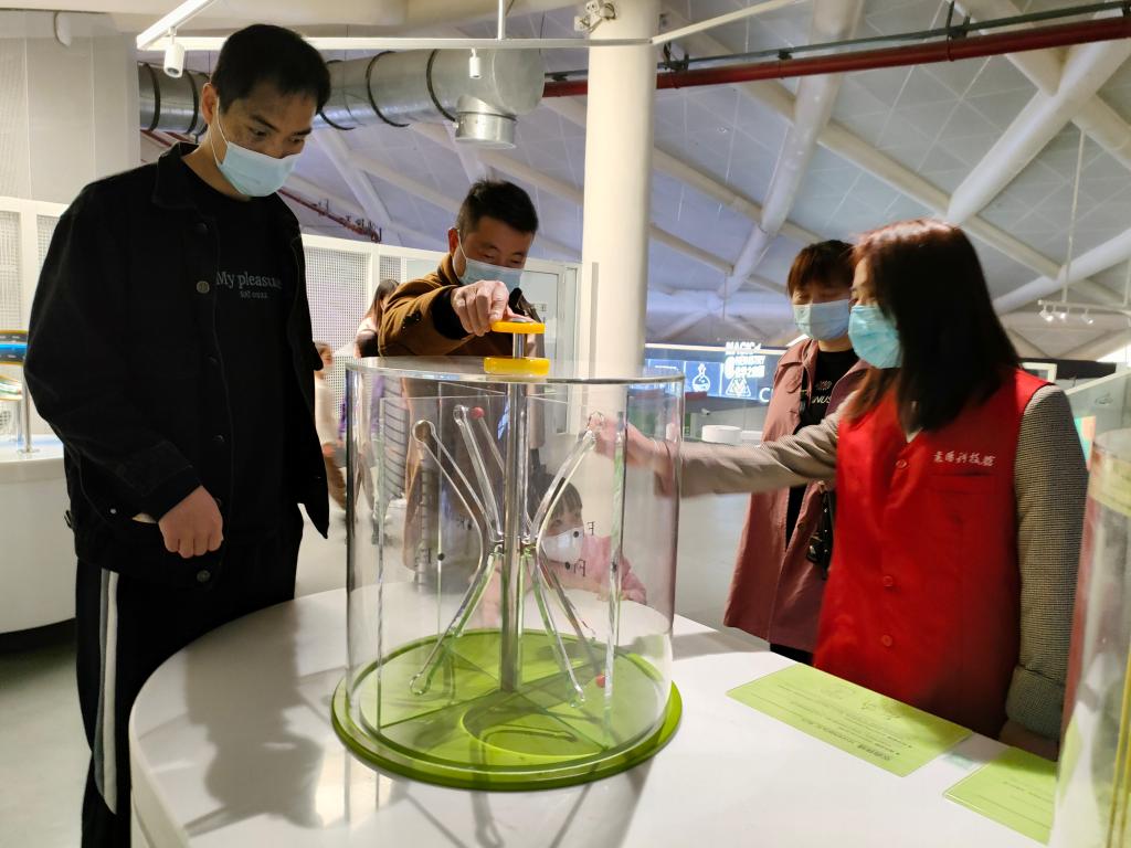 在數(shù)學(xué)展廳,志愿者們向襄陽市民們講解莫比烏斯環(huán),勾股定理,圓錐曲線等項(xiàng)目,并引導(dǎo)他們選擇自己感興趣的項(xiàng)目,動(dòng)手試一試,體驗(yàn)數(shù)學(xué)世界的奇妙。