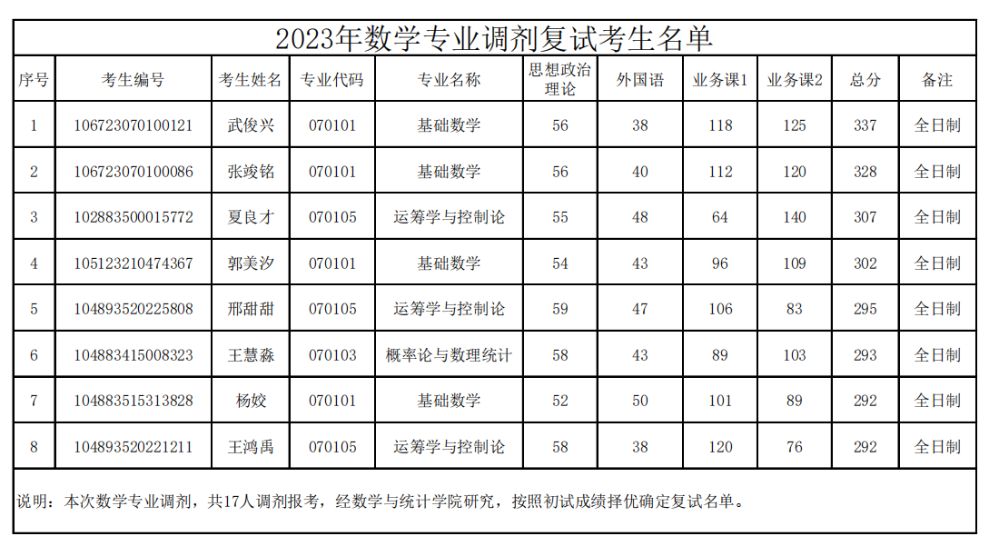 2023年數(shù)學(xué)專(zhuān)業(yè)調(diào)劑復(fù)試考生名單